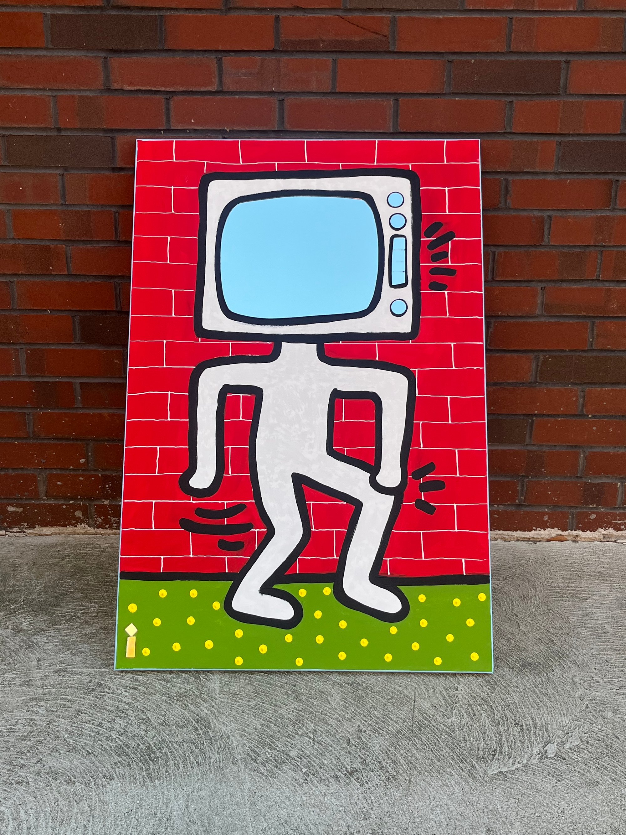 24”x36” canvas. Acrylic and mirror. After Haring